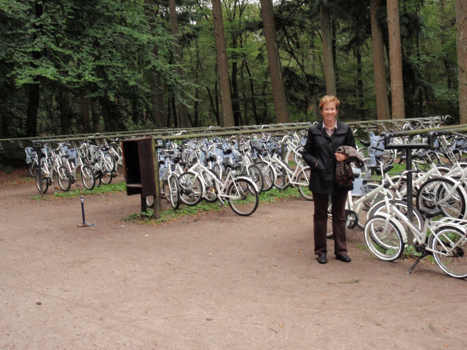 Afterwards, Loel and I went into this national park and rode these white bikes all around beautiful forests on wonderful bike paths. As soon as I got on my bike, my phone rang. This time I got off to answer it (unlike my last time on the bike in Brugge) and it was the Assistants again, just like last time! So I didn't fall off my bike this time - I didn't try riding and talking on the phone.